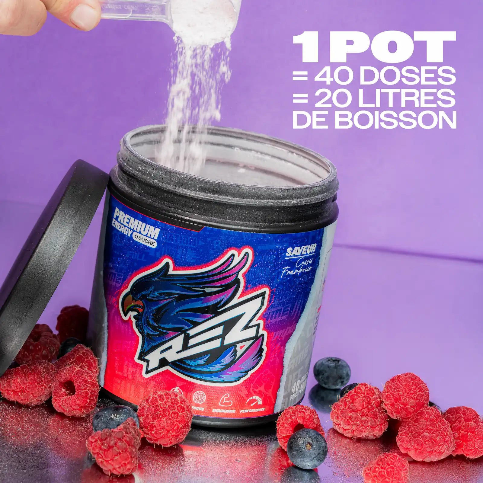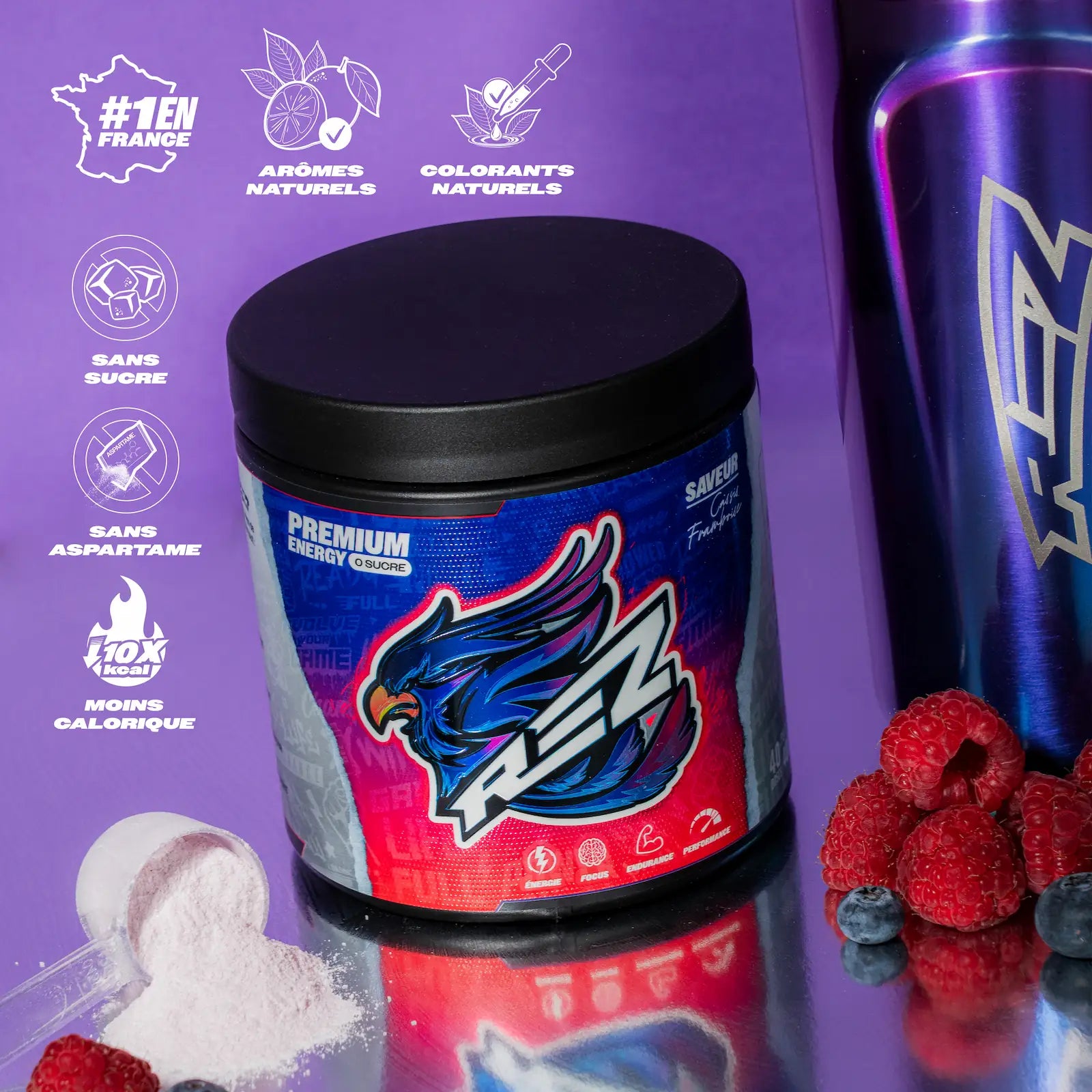 Rez est une boisson énergisante en poudre à diluer, sans sucre et faible en calories.
